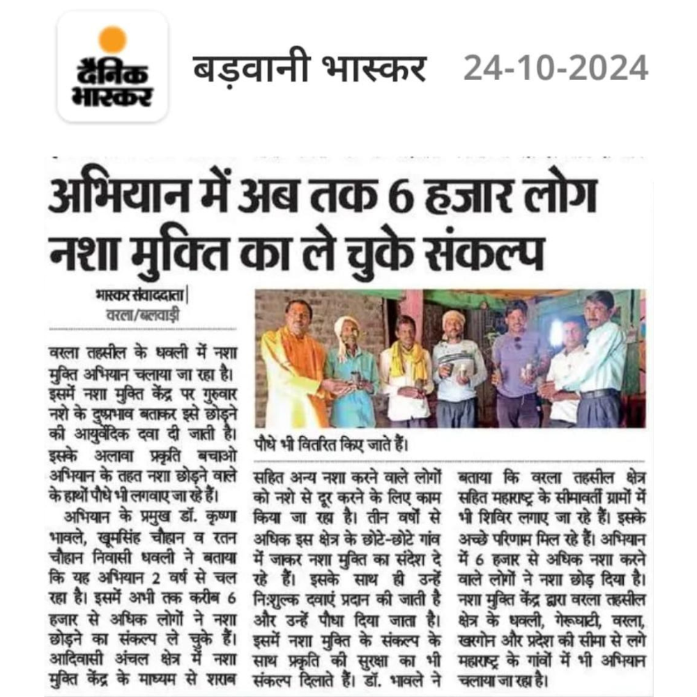 २०१२ पासून डॉ. कृष्णा भावले यांच्या नेतृत्वाखालील सारा नवजीवन बहुउद्देशीय संस्था व्यसनमुक्त समाज निर्मितीसाठी कार्यरत आहे.
